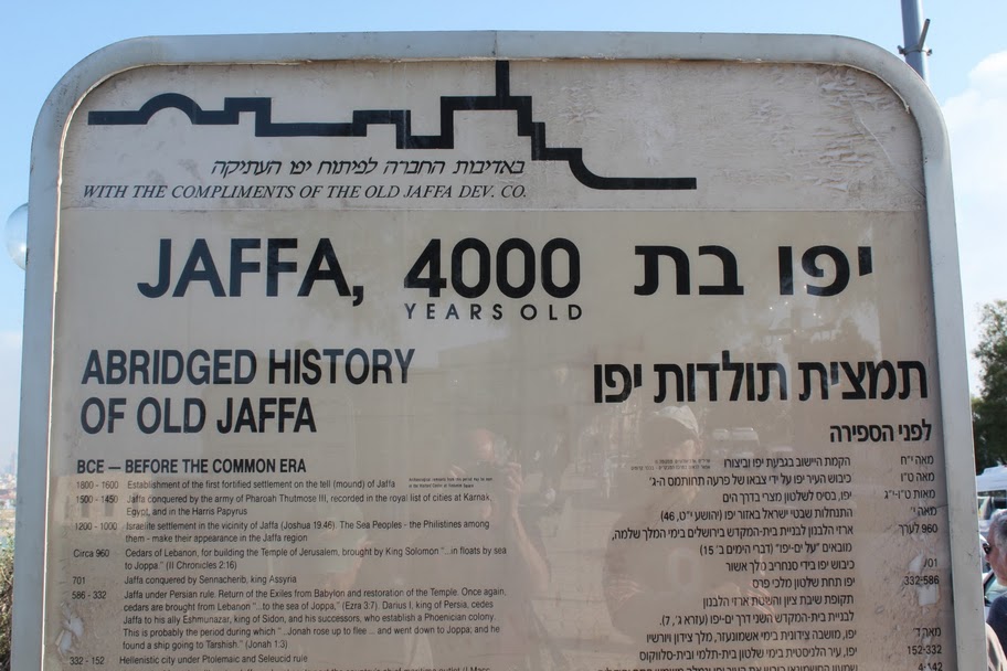 Jaffa. The signs are only in Hebrew and English. Where’s the Arabic? The Palestinians who lived here but were not included in the decisions made in the town are now gone.